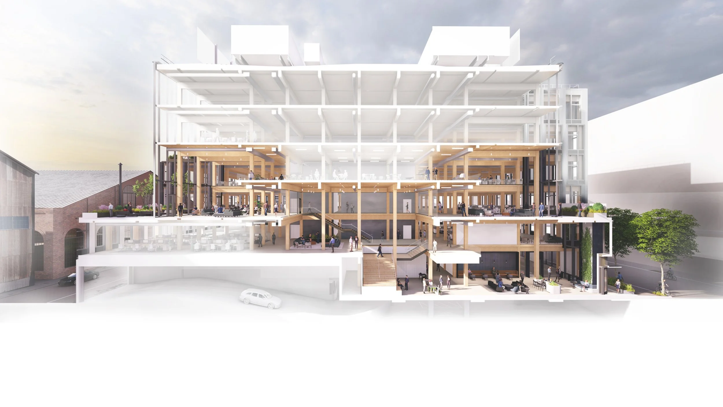 The mass timber structure fulfilled the project goals to attract tenants and create biophilic, healthy office environments.